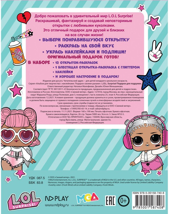 Набор для творчества с наклейками «L.O.L. Surprise!» поможет ребенку изготовить подарок своими руками и увлекательно провести время!