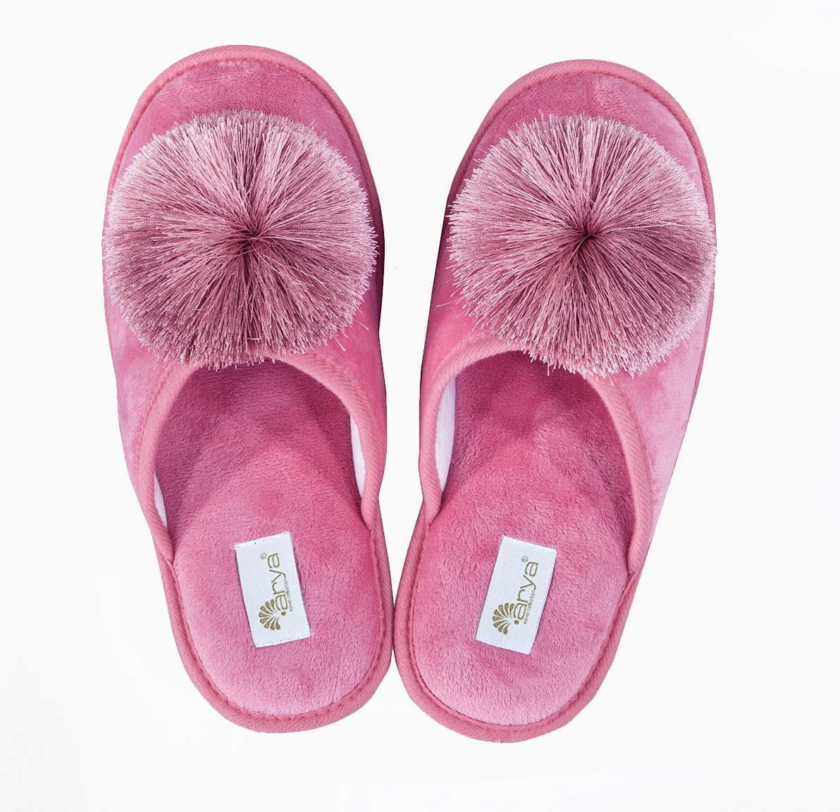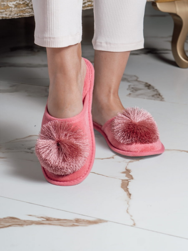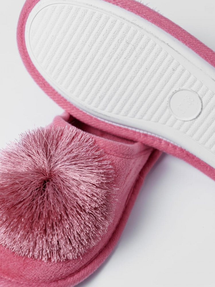 Симпатичные тапочки, помпончиком при ходьбе интересно подскакивают и переливаются. Удобные, не скользят, правда теперь слышно как я хожу по дому. Пошив качественный. Брала со скидкой в черную пятницу очень довольна.