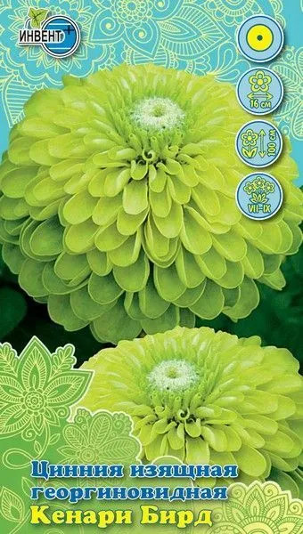 Инвент+ Цинния изящная георгиновидная «Кенари бирдь»+7 хорошая всхожесть неприхотливость долго цветут цвет отличается