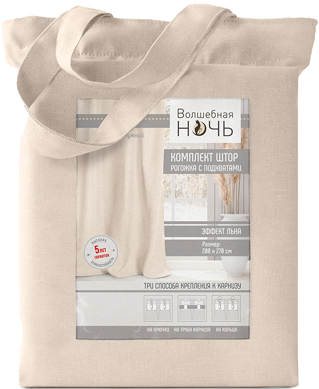 Понравилось, что штора упакована в специальную сумку, что очень удобно. Ткань штор плотная (рогожка). Хорошо подойдёт для спальни.