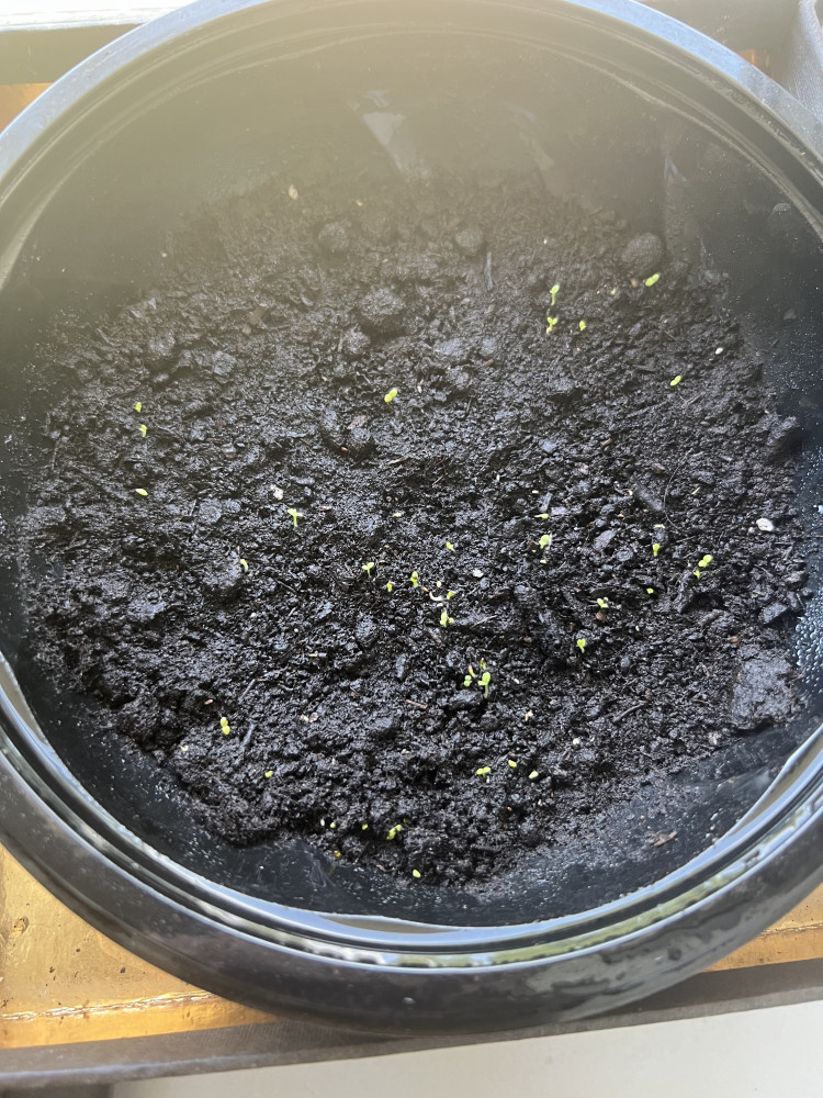 Ну что золотые мои, хочу поделиться с вами не только отзывом, но и тем как мне удалось посеять семена Тархуна. Я заказал поздно, поэтому переживал что не взойдут. Получил я в конце мая, а посеял в первых числах июня. Сеял в контейнер с прозрачной крышкой. Использовал магазинный цветочный грунт. Семена предварительно высыпал на ватный диск и свернул, который затем окунул в перекись водорода, чтобы снять пленку с семян. Затем промыл под проточной водой и посеял. Сверху семян чуть-чуть просыпал грунт, буквально щепотку. Пролил остоявшей водой и закрыл. Через три дня проклюнулись 60-70% семян. Фото прилагаю. Удачи.
