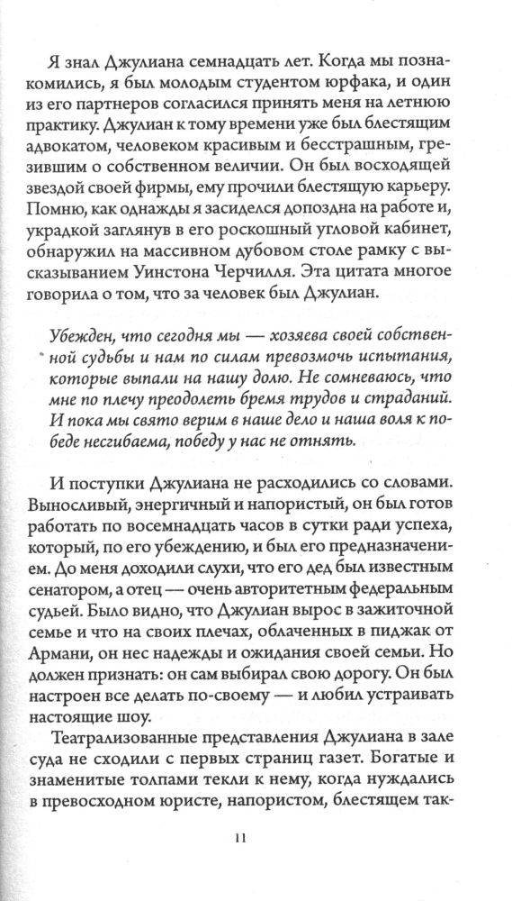 Моя первое чтение началось с этого автора, мотивация очень хорошая, потом все читала без остановки поняла, что книга это сокровище, Робин Шарма учит хорошим вещам и понимаешь смысл жизни.