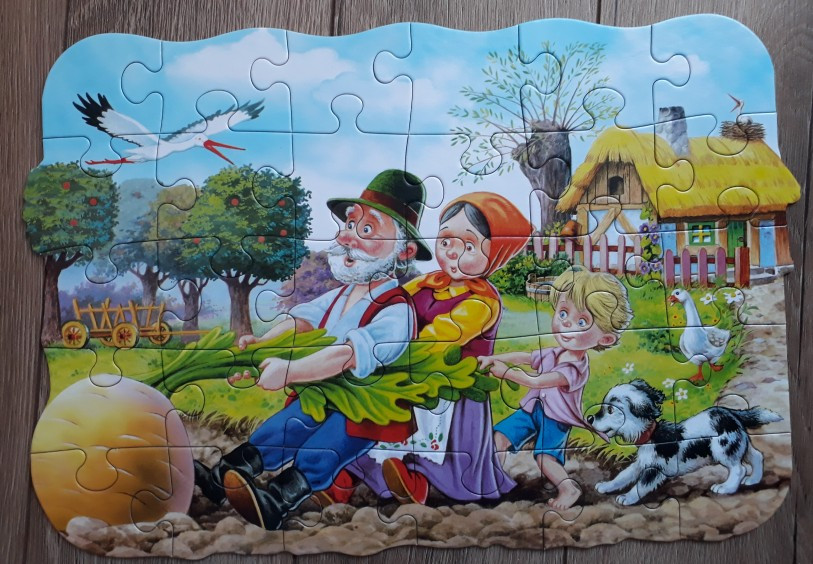 Крупные картонные пазлы, яркая картинка с добрым сюжетом.