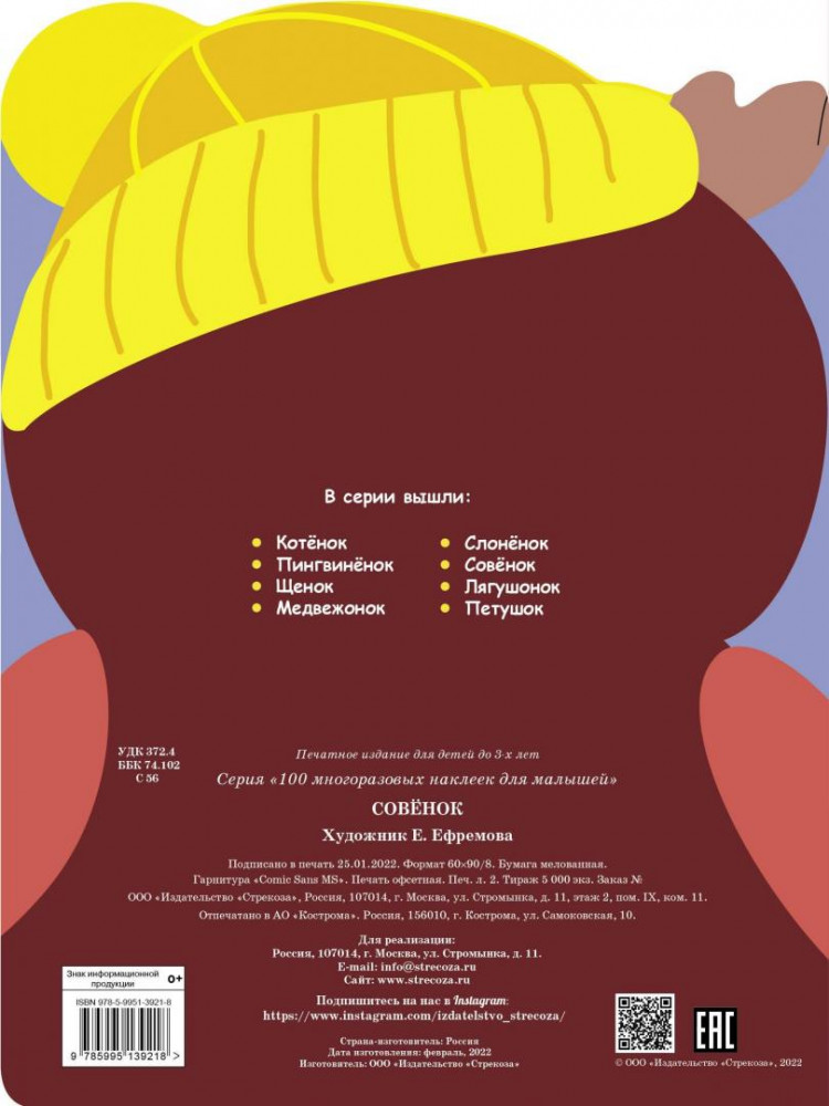 💳 Оплатить за товар можно при получении 🇰🇿 Есть бесплатная доставка по Казахстану от 1 дня 🎁 Копите бонусы с каждой покупки Серия: 100 многоразовых наклеек для малышей Вашему вниманию предлагается раскраска, включающая в себя задания с наклейками для детей до 3-х лет. |