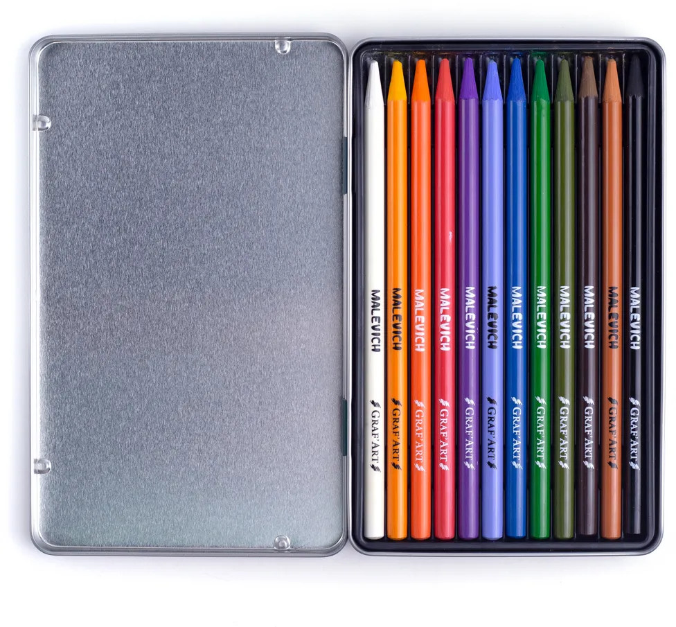 💳 Оплатить за товар можно при получении 🇰🇿 Есть бесплатная доставка по Казахстану от 1 дня 🎁 Копите бонусы с каждой покупки Серия: GrafArt Набор из 12-ти художественных монолитных пастельных карандашей "Малевичъ" Graf'Art средней жесткости для графики и сухих техник. сочетаются с классической сухой пастелью, углем, мелом, а также могут использоваться в смешанной технике с соусом (по-сухому) |