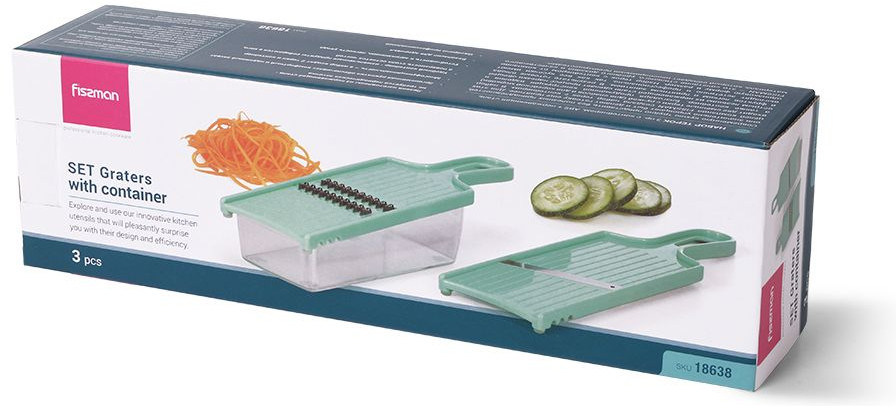 Fissman Набор терок с контейнеромВ данный момент этот товар отсутствует в продаже. Возможно, у нас найдется аналогичный или похожий товар здесь. Набор терок с контейнером от компании Fissman — это сочетание стильного, удобного дизайна и качественного материала, который обладает неоспоримыми преимуществами: |