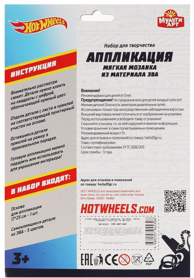 Multi Art Аппликация мягкая мозаика «Hot Wheels»-35%