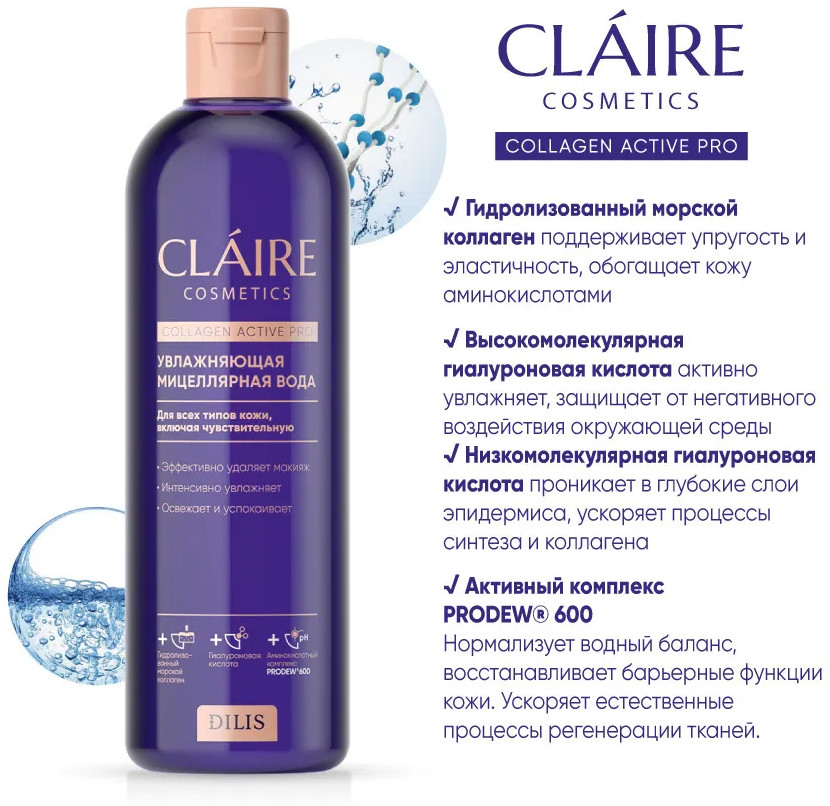 Claire Cosmetics Мицеллярная вода для лица увлажняющая-20% +57 хорошо смывает не щиплет приятный запах большой объём увлажняет кожу