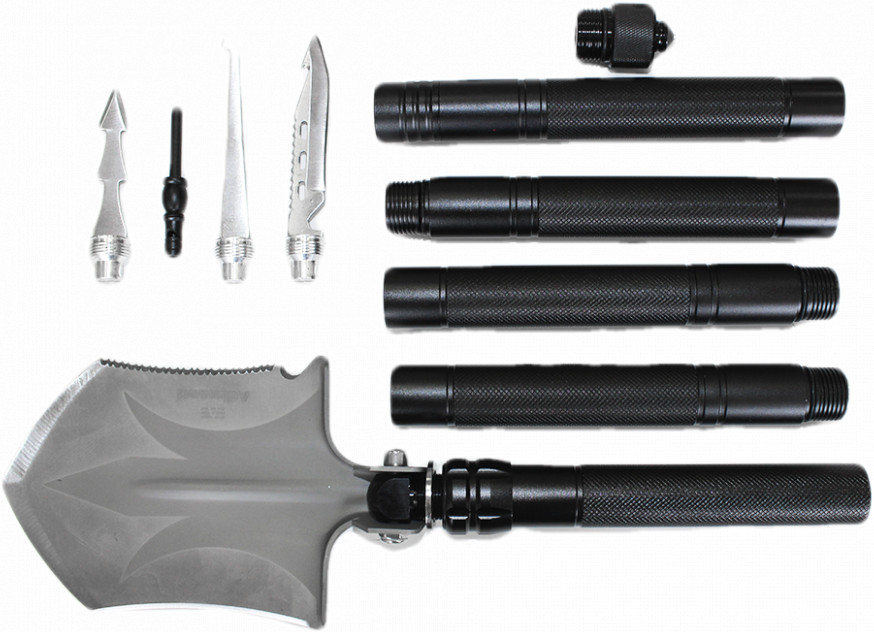 Лопата «Adimanti HK002» является многофункциональным изделием, который состоит из ряда инструментов первой необходимости при выживании вдалеке от цивилизации: