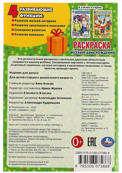 | УМка Раскраска «Весёлый день рождения»