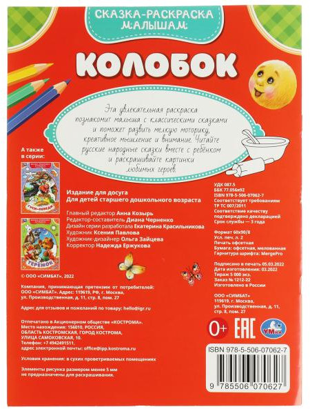 💳 Оплатить за товар можно при получении 🇰🇿 Есть бесплатная доставка по Казахстану от 1 дня 🎁 Копите бонусы с каждой покупки Сказка-раскраска малышам «Колобок. Три поросёнка» обязательно понравится ребёнку: |