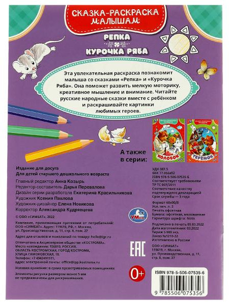 УМка Сказка-раскраска малышам «Репка. Курочка Ряба»-35% +4