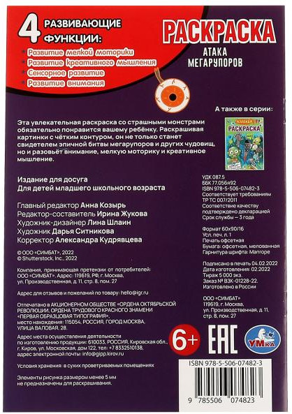 В данный момент этот товар отсутствует в продаже. Возможно, у нас найдется аналогичный или похожий товар здесь. Раскраска «Атака мегарупоров» обязательно понравится маленькому художнику: