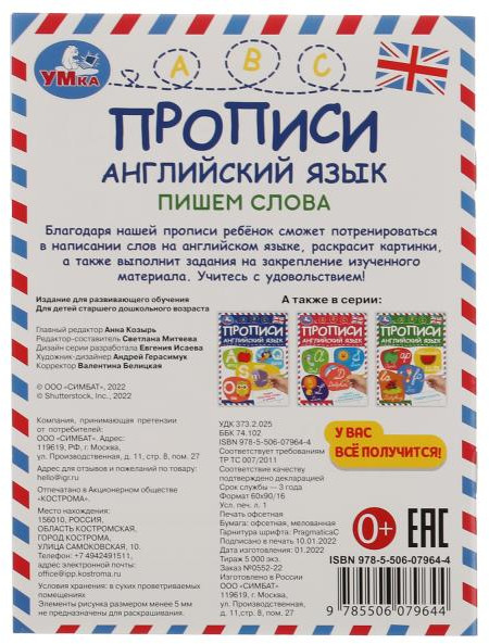 УМка Прописи «Английский язык. Пишем слова»В данный момент этот товар отсутствует в продаже. Возможно, у нас найдется аналогичный или похожий товар здесь. Прописи «Английский язык. Пишем слова» — настоящий тренажёр по чистописанию: |