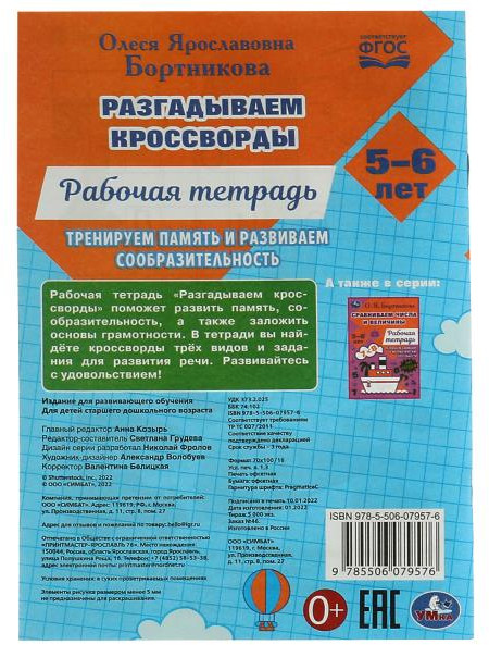 💳 Оплатить за товар можно при получении 🇰🇿 Есть бесплатная доставка по Казахстану от 1 дня 🎁 Копите бонусы с каждой покупки Рабочая тетрадь «О. Я. Бортникова. Разгадываем первые кроссворды. 5-6 лет» поможет ребёнку потренировать память и развить сообразительность: |