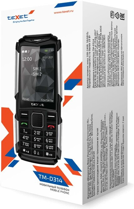 Сотовый телефон Texet TM-D314 выполнен в корпусе из ударопрочного пластика, поэтому станет надежным спутником на каждый день. Прорезиненные вставки выполняют защитную функцию от попадания воды и обеспечивают комфортное удержание мобильного устройства. В телефоне установлен 2.8-дюймовый дисплей TN (240×320 пикселей), на котором отображается четкая и красочная картинка.