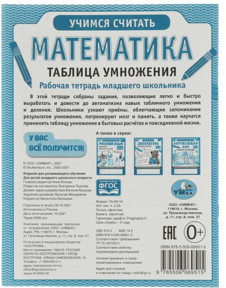 💳 Оплатить за товар можно при получении 🇰🇿 Есть бесплатная доставка по Казахстану от 1 дня 🎁 Копите бонусы с каждой покупки Рабочая тетрадь младшего школьника «Математика. Таблица умножения» станет отличным помощником для ребёнка в процессе освоения им новых знаний: |