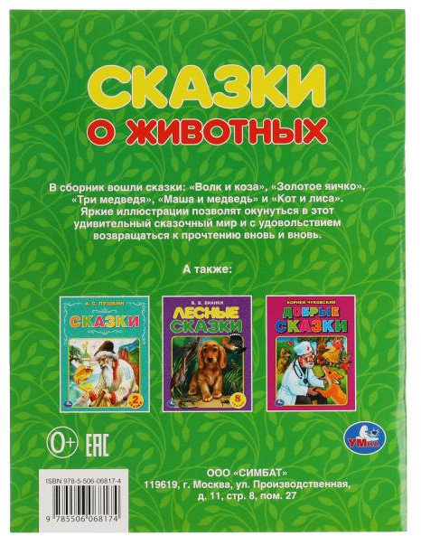 В данный момент этот товар отсутствует в продаже. Возможно, у нас найдется аналогичный или похожий товар здесь. Книга в мягкой обложке «Сказки о животных» непременно понравится детям: