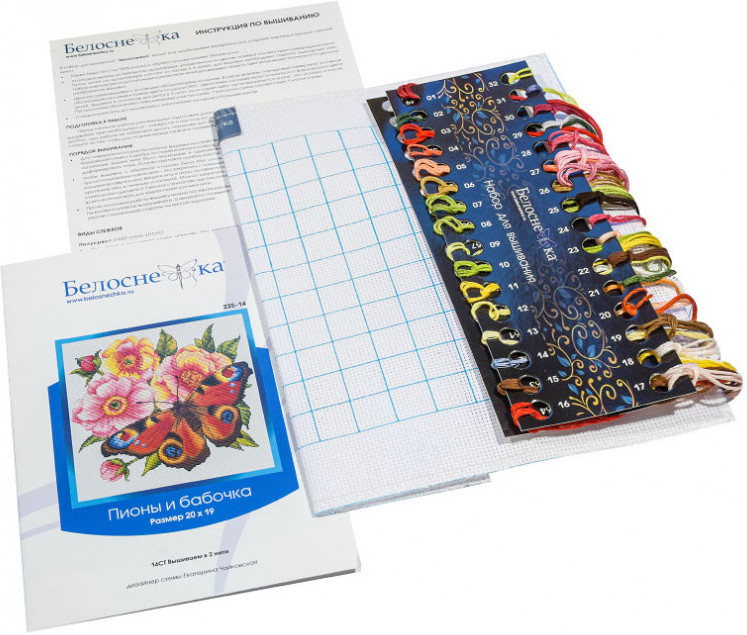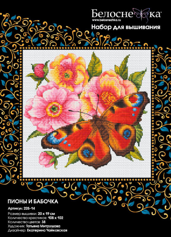 Белоснежка Набор для вышивания «Пионы и бабочка»-30% +161