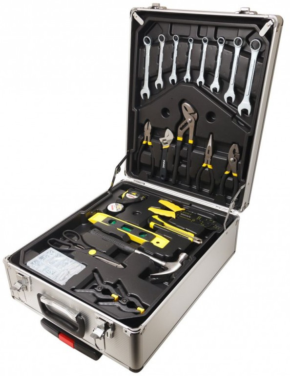 В данный момент этот товар отсутствует в продаже. Возможно, у нас найдется аналогичный или похожий товар здесь. Универсальный строительный набор инструментов поможет в любой задаче по улучшению уюта в доме. С этим набором будет легко повесить полку и прибить гвоздь. Вы сможете установить розетку или люстру. Установить кран на кухне и смеситель в ванной. Практичный набор для практичного хозяина.