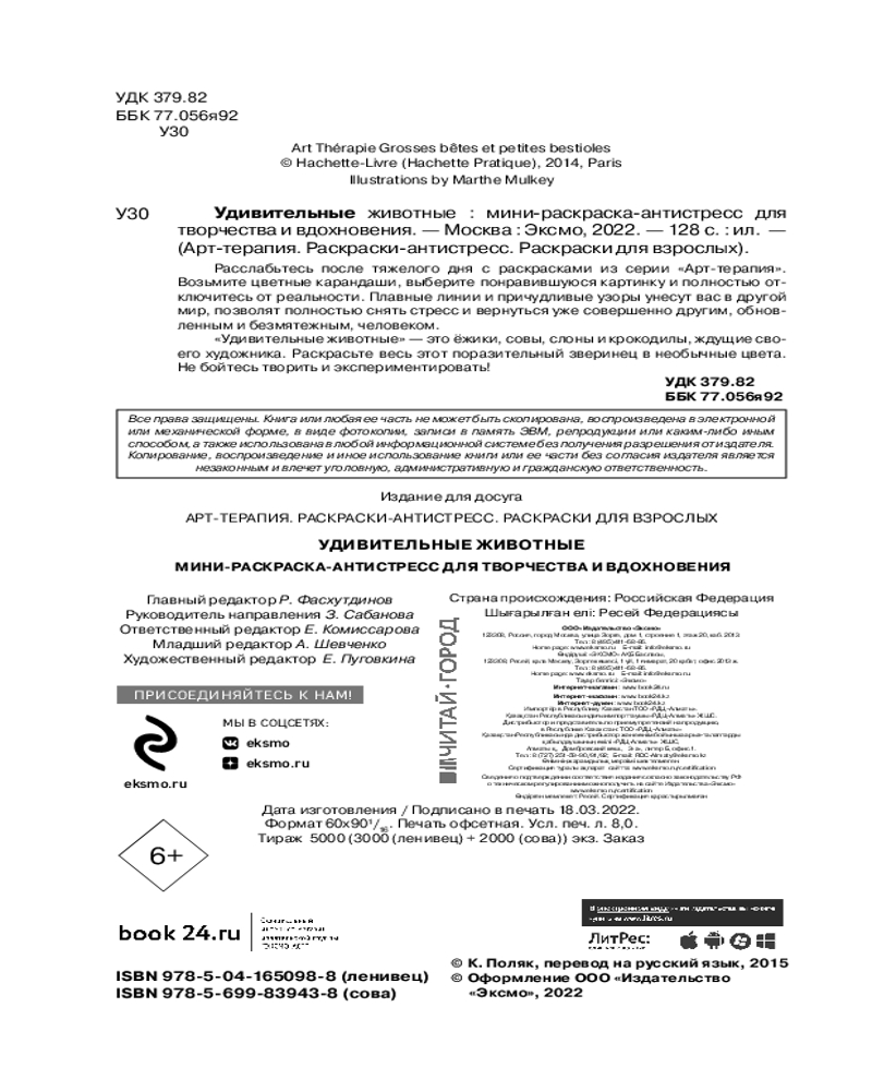Удивительные животные. Мини-раскраска-антистресс для творчества и вдохновенияВ данный момент этот товар отсутствует в продаже. Возможно, у нас найдется аналогичный или похожий товар здесь. Серия: Арт-терапия. Раскраски-антистресс. Раскраски для взрослых Новая серия «Арт-терапия» — это множество причудливых узоров и фантастических рисунков, которые подарят вам спокойствие и умиротворение и помогут избавиться от стресса. Возьмите цветные карандаши или ручки и полностью отключитесь от внешнего мира, раскрашивая забавных сов и милых ленивцев, и через некоторое время вы вернетесь уже полностью обновленным человеком. |