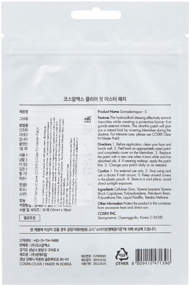 CosRX Патчи ультра-тонкие против акне «Clear Fit Master Patch»В данный момент этот товар отсутствует в продаже. Возможно, у нас найдется аналогичный или похожий товар здесь. Ультратонкие гидроколлоидные патчи предотвращают попадание инфекции в поражённый участок и устраняют гнойные выделения. Патчи защищают кожу от пересыхания и удерживают влагу в ней. |
