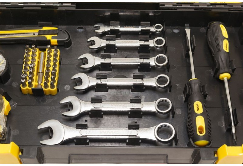 WMC TOOLS Набор инструментовВ данный момент этот товар отсутствует в продаже. Возможно, у нас найдется аналогичный или похожий товар здесь. Набор инструмента WMC Tools представляет собой комплект профессионального оборудования для работы слесаря, автомеханика, электрика и других специалистов. Все элементы набора выполнены из прочной стали, которая обладает высокой устойчивостью к физическому износу и нагрузке, что позволяет увеличить срок службы. Для работы с крепежом различного формата имеются отвертки и комплект коротких бит под отверточную рукоятку. Наличие большого количества разнообразного инструмента значительно расширяет сферу применения комплекта. Его также можно использовать при проведении ремонта. Для простоты транспортировки комплект уложен в пластиковый кейс с надежным защелками, что позволяет переносить инструмент с минимальным шумом. |