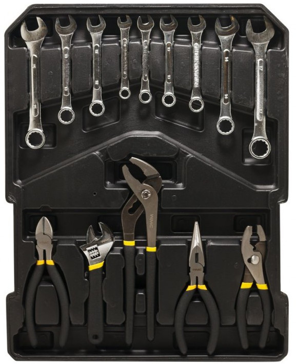 WMC TOOLS Набор инструментовВ данный момент этот товар отсутствует в продаже. Возможно, у нас найдется аналогичный или похожий товар здесь. Универсальный строительный набор инструментов поможет в любой задаче по улучшению уюта в доме. С этим набором будет легко повесить полку и прибить гвоздь. Вы сможете установить розетку или люстру. Установить кран на кухне и смеситель в ванной. Практичный набор для практичного хозяина. |