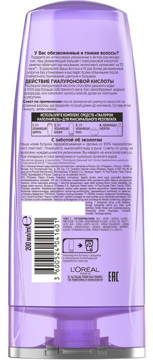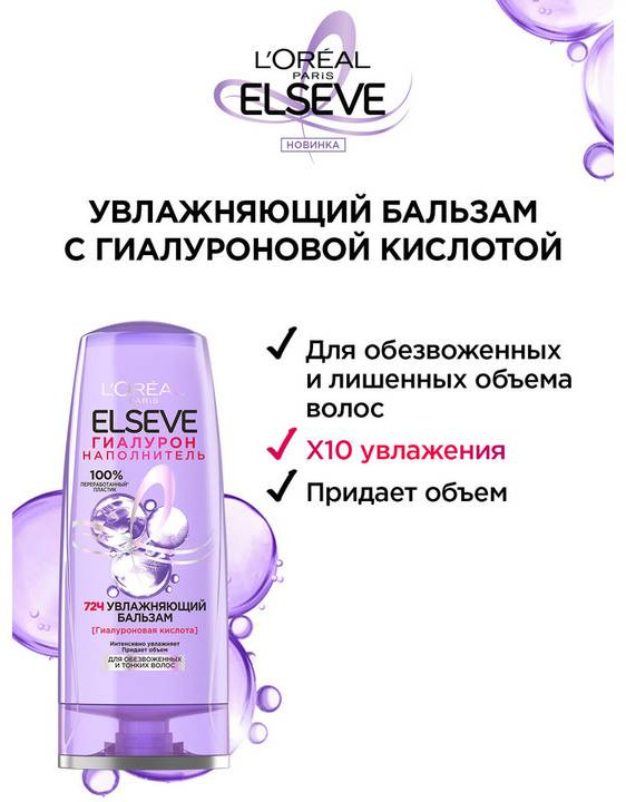 Elseve Увлажняющий бальзам «Гиалурон наполнитель» для обезвоженных и тонких волос с гиалуроновой кислотой