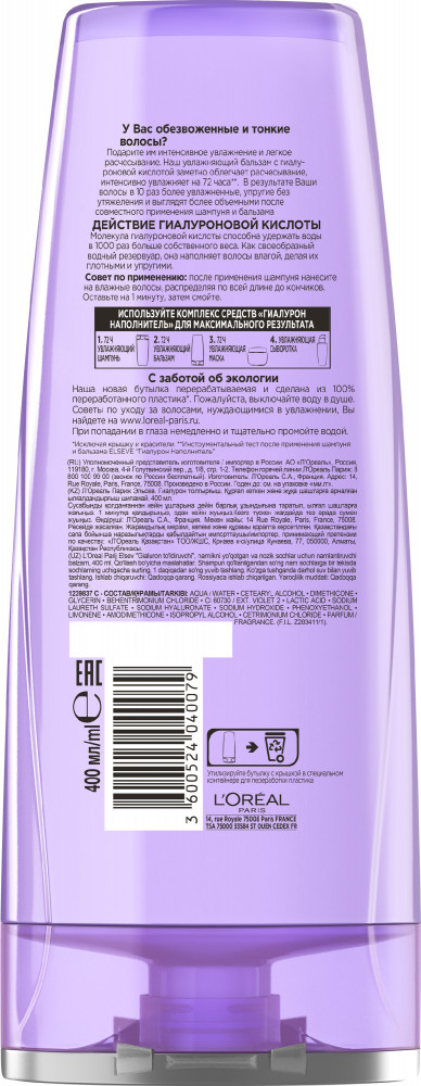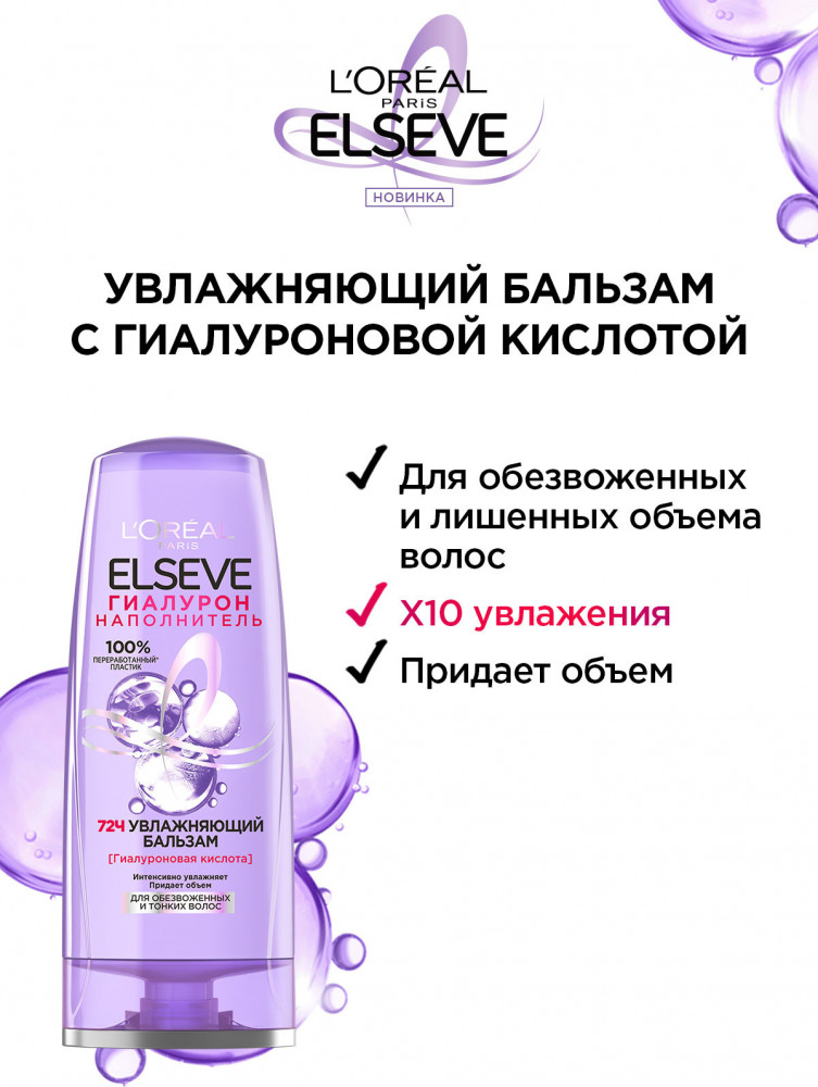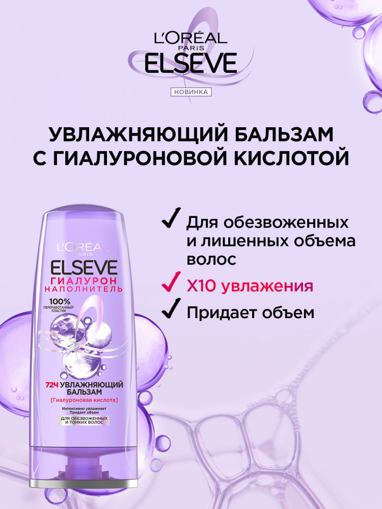 Elseve Увлажняющий бальзам «Гиалурон наполнитель» для обезвоженных и тонких волос с гиалуроновой кислотой
