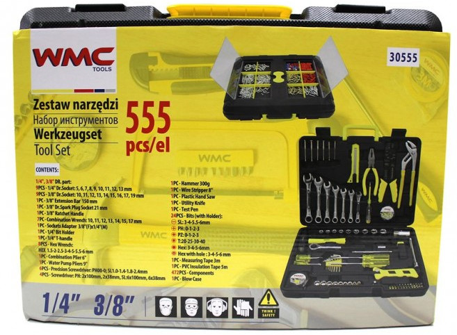 WMC TOOLS Набор инструментовВ данный момент этот товар отсутствует в продаже. Возможно, у нас найдется аналогичный или похожий товар здесь. Набор инструмента WMC Tools представляет собой комплект профессионального оборудования для работы слесаря, автомеханика, электрика и других специалистов. Все элементы набора выполнены из прочной стали, которая обладает высокой устойчивостью к физическому износу и нагрузке, что позволяет увеличить срок службы. Для работы с крепежом различного формата имеются отвертки и комплект коротких бит под отверточную рукоятку. Наличие большого количества разнообразного инструмента значительно расширяет сферу применения комплекта. Его также можно использовать при проведении ремонта. Для простоты транспортировки комплект уложен в пластиковый кейс с надежным защелками, что позволяет переносить инструмент с минимальным шумом. |