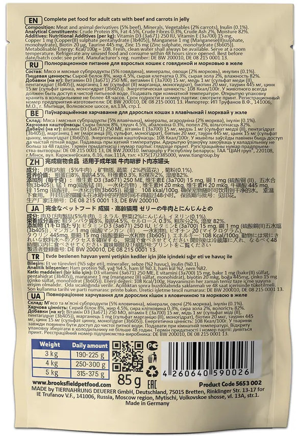 Brooksfield Корм для кошек с говядиной и морковью в желе