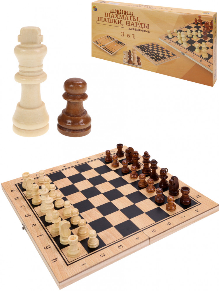 Рыжий кот Игра настольная «3 в 1»В данный момент этот товар отсутствует в продаже. Возможно, у нас найдется аналогичный или похожий товар здесь. Классическая игра 3 в 1: шахматы, нарды, шашки. Шахматы — настольная игра, предназначенная как для детей в возрасте от 6 лет, так и для взрослых. Подобные игры развивают у детей внимательность, наблюдательность, память, мелкую моторику рук и пальцев. Взрослым подобный игровой процесс помогает отвлечься от будней, сосредоточиться на решении непростых логических задач, развивает стратегическое мышление. Игра в нарды также поспособствует развитию стратегического мышления и пространственного воображения, улучшит память и математические способности, научит концетрироваться. Также в наборе есть деревянное поле для игры в нарды и фишки к нему, кубики и шашки. |