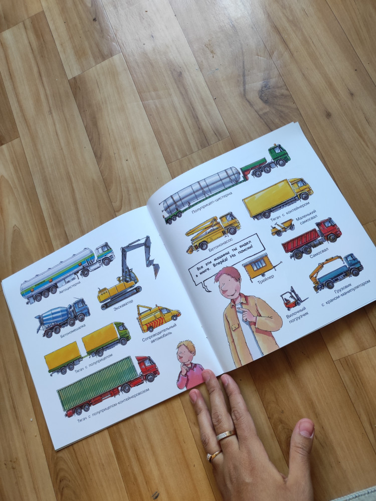 книга очень яркая. Иллюстрации хорошие. Ребенок 1г 7 месяцев любит разглядывать все что связано с машинами. Страницы как у плотного журнала