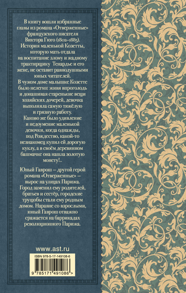 В данный момент этот товар отсутствует в продаже. Возможно, у нас найдется аналогичный или похожий товар здесь. Серия: Классика для школьников В книгу вошли избранные главы из романа «Отверженные» французского писателя Виктора Гюго (1802–1885).