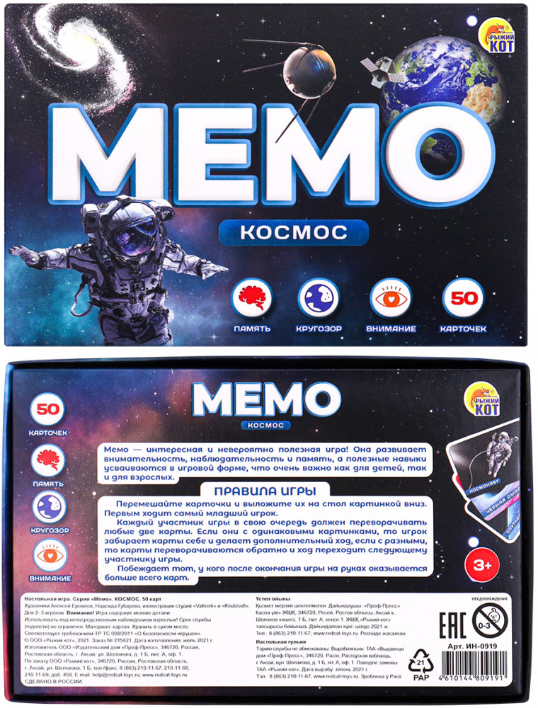 Десятое королевство Игра настольная «Мемо.Космос»-25% +39
