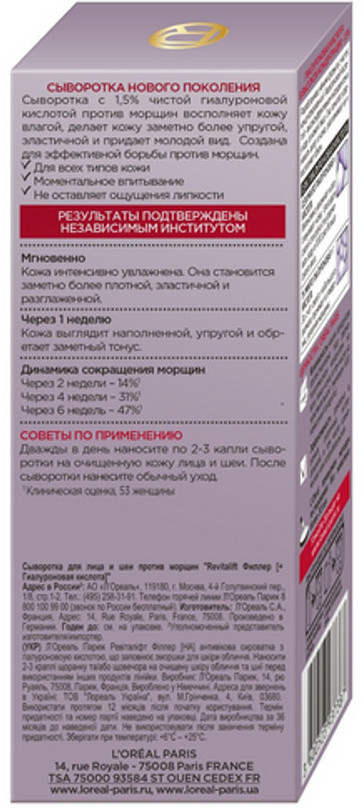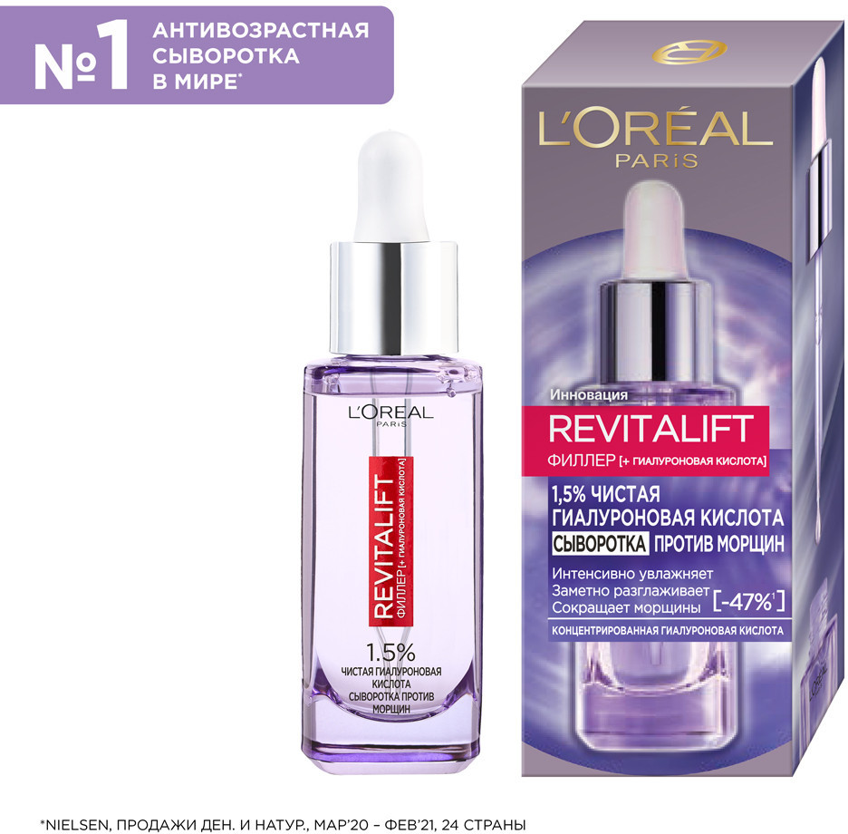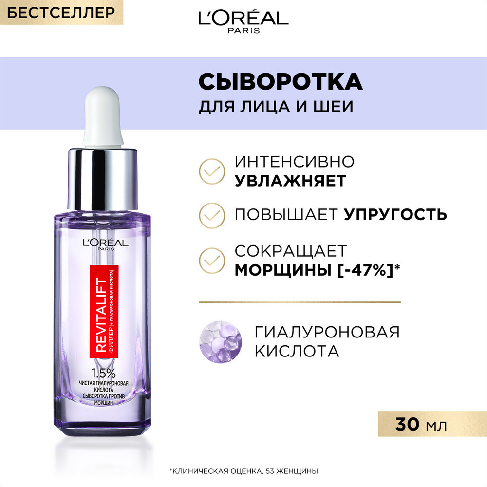 L'Oreal Paris Сыворотка для лица и шеи с гиалуроновой кислотой «Revitalift филлер»