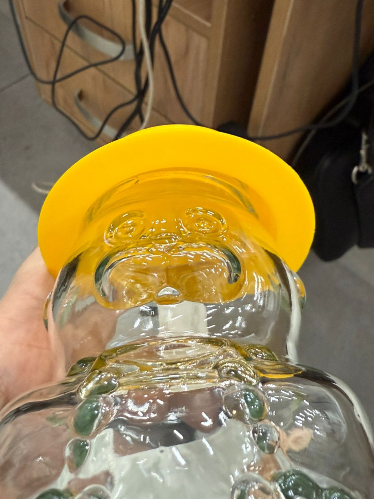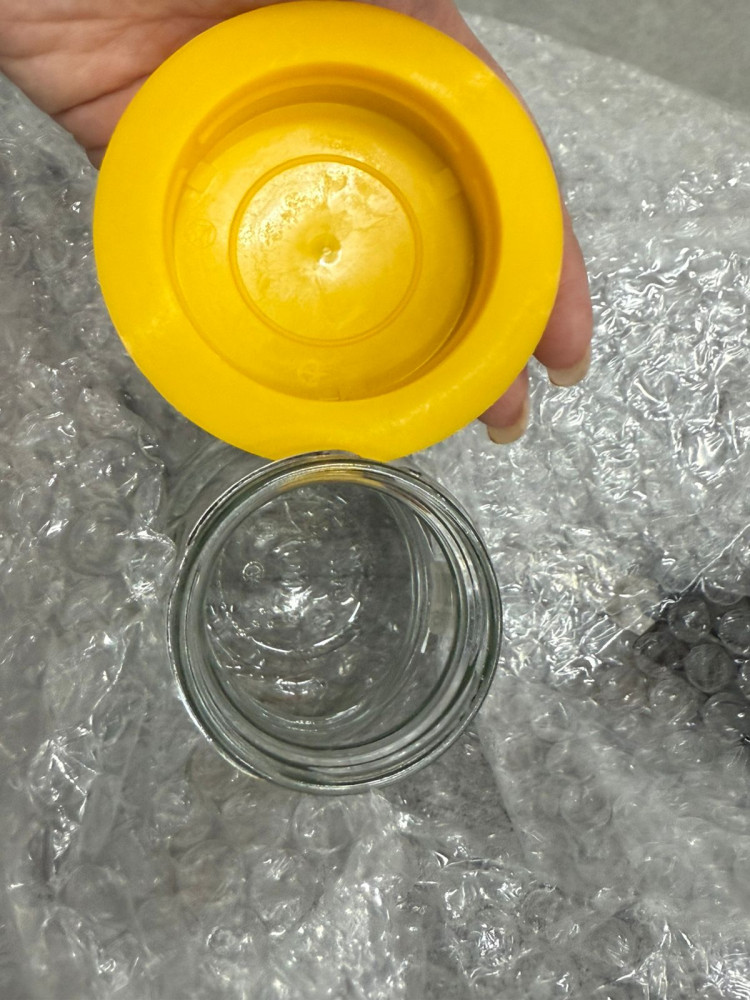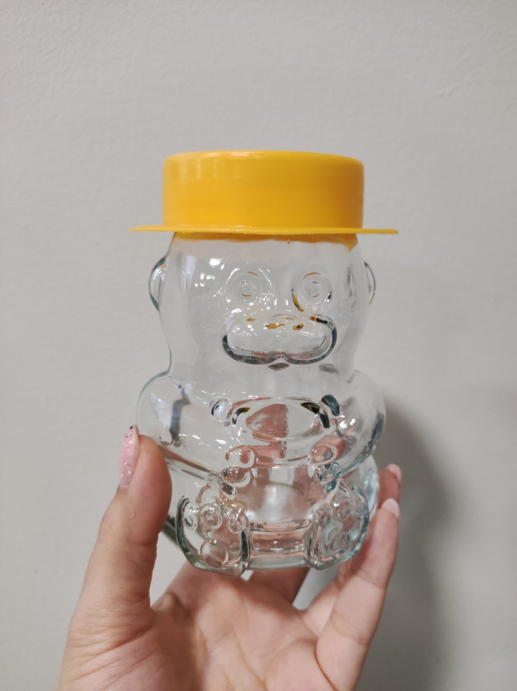 Специально взяла для мишек мармеладок, идеально! Дети обожают! Красиво хранить. Крышка жёлтая шляпка есть!
