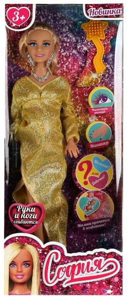 💳 Оплатить за товар можно при получении 🇰🇿 Есть бесплатная доставка по Казахстану от 1 дня 🎁 Копите бонусы с каждой покупки Серия: София и Алекс Будущая мама София одета в красивое золотистое платье из переливающейся ткани. Образ куколки дополняют модные крупные серьги, колье и элегантная сумочка. Одежду и аксессуары легко снять и надеть. С такой модной куклой девочке будет интересно и весело играть: благодаря тому, что руки и ноги куклы подвижны, им можно придать любое положение. У Софии длинные красивые волосы, которые хозяйка куклы сможет заплетать в разные причёски. Детально проработанный дизайн игрушки вдохновит девочку на новые игровые сюжеты. |