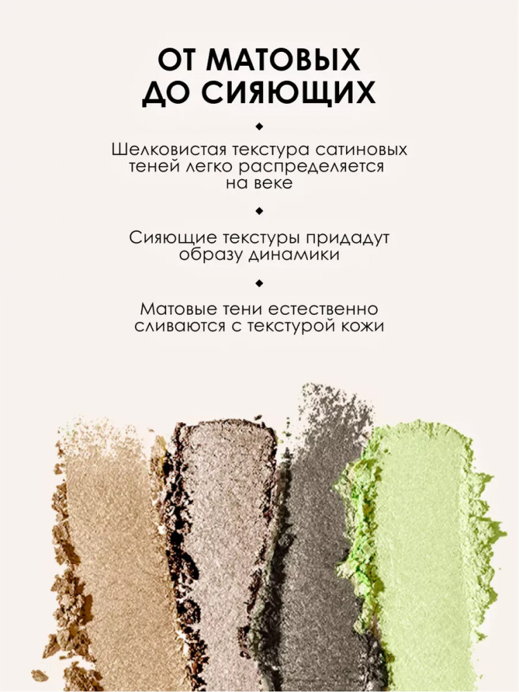 тени понравились. цвета немного отличаются от фото, но в целом неплохо. не осыпаются.