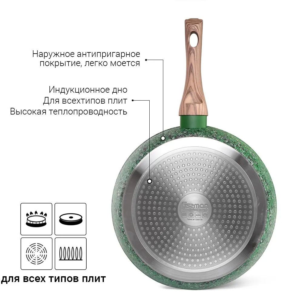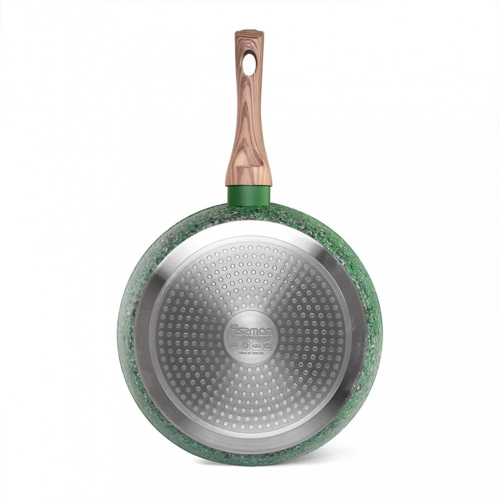 Серия посуды Malachite с уникальным покрытием EcoStone собственной разработки Fissman, выполненная в глубоком зелёном цвете с крупными белыми и черными пятнами, обладает высочайшей прочностью, термостойкостью и устойчивостью к истиранию и коррозии.