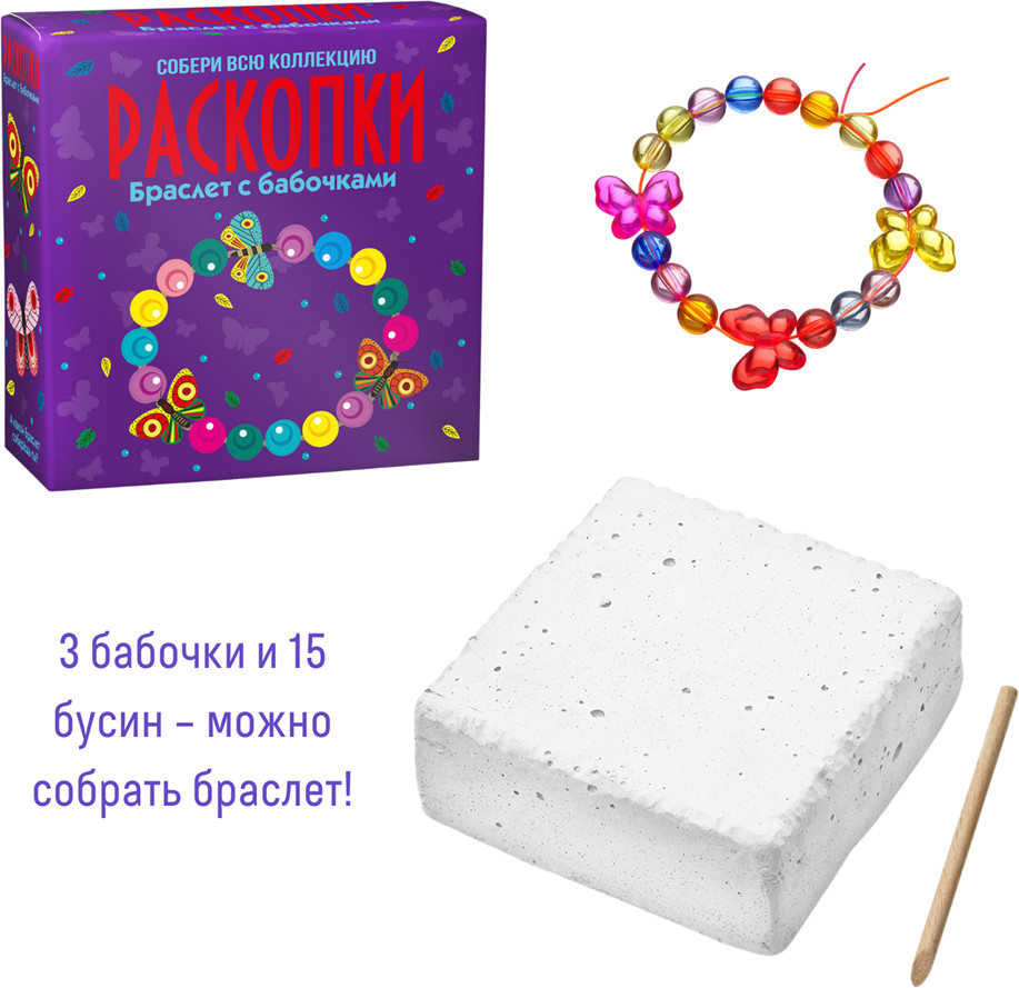 Bumbaram Набор для проведения раскопок «Браслет с бабочками»+72 ребёнок доволен нравится твердый гипс