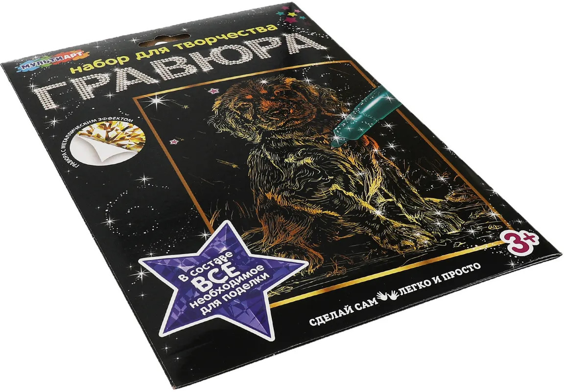 💳 Оплатить за товар можно при получении 🇰🇿 Есть бесплатная доставка по Казахстану 🎁 Копите бонусы с каждой покупки Набор для творчества «Гравюра. Щенок» ТМ «Мульти Арт» — отличный подарок для ребёнка, который будет способствовать развитию его творческих способностей. С помощью данного набора юный художник сможет создать эффектную золотистую картину на чёрном фоне. Контур рисунка уже нанесён на основу, остаётся только процарапать изображение специальным штихелем. Готовую поделку можно подарить близким или использовать для украшения интерьера. В составе всё необходимое для поделки. Гравюра с металлическим эффектом (золотистый). |