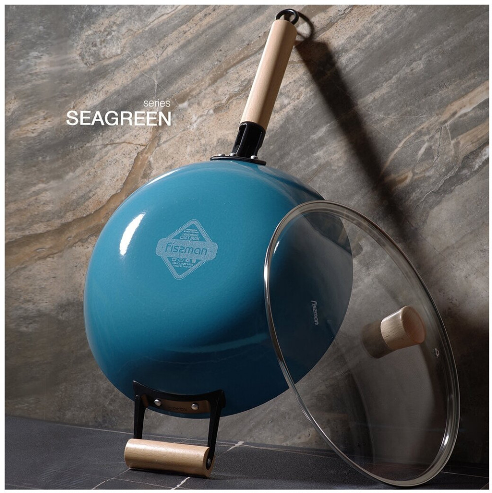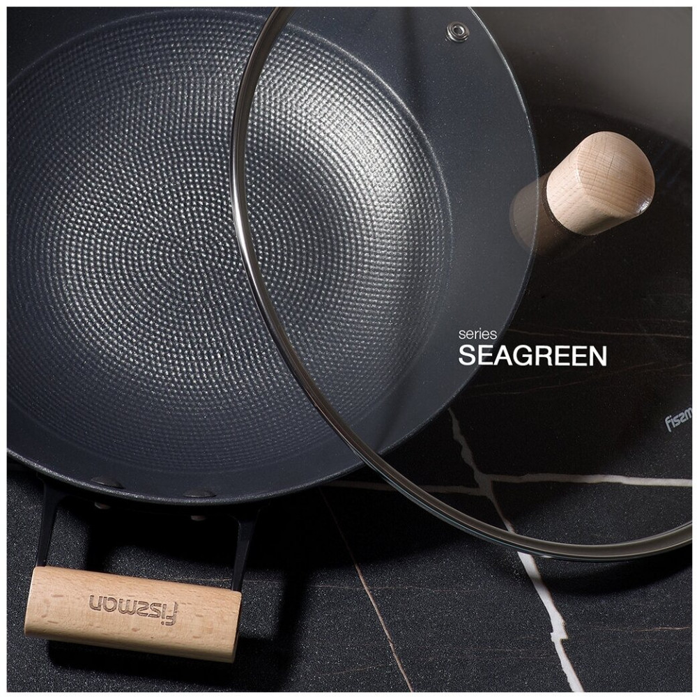 Fissman Сковорода-вок «Seagreen»В данный момент этот товар отсутствует в продаже. Возможно, у нас найдется аналогичный или похожий товар здесь. Серия: Seagreen Сковороды из облегчённого чугуна на 50% легче традиционных изделий из чугуна, посуда не требует предварительной подготовки к эксплуатации. Уникальная рельефная внутренняя поверхность дна в виде сот позволяет готовить полезные для здоровья, а также диетические блюда с малым количеством масла, обеспечивая его равномерное распределение и тем самым защищая пищу от подгорания и перегрева. Дополнительный антипригарный слой профессионального покрытия XylanPlus содержит керамические частицы, которые усиливают антипригарные свойства и обеспечивают надежную защиту от механического истирания на долгие годы. Сковороды Seagreen отвечают международным экологическим стандартам, имеют соответствующие сертификаты. При производстве посуды компания FIissman не применяет Pfoa, токсичные, канцерогенные компоненты. Приготовленная пища безвредна, отличается отменным вкусом. Сковороды из облегчённого чугуна серии Seagreen имеют толстое дно, что способствует равномерному распределению тепла. Сковороды не деформируются от перегрева или падений. Прозрачная стеклянная крышка с паровыпуском позволяет наблюдать за готовностью пищи, не открывая посуду, тем самым, исключая попадания брызг на кожу и одежду. Дополнительная ручка позволяет равномерно распределить вес тяжелой сковороды и повысить удобство ее перемещения. Стильные деревянные ручки и эмалированное покрытие снаружи цвета морской волны удовлетворят |