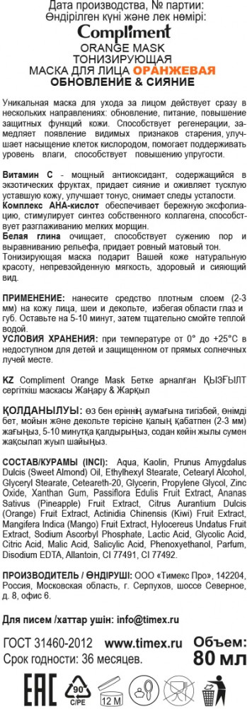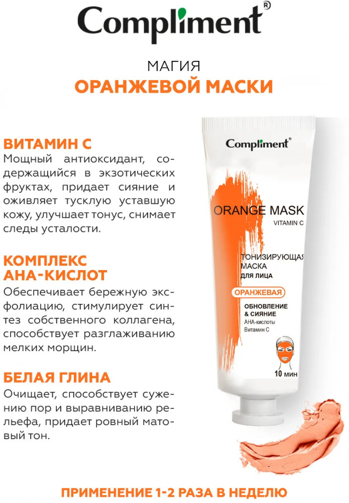 Compliment Маска для лица обновление и сияние, тонизирующая «Оранжевая»