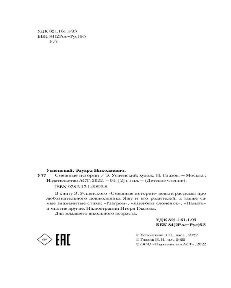 💳 Оплатить за товар можно при получении 🇰🇿 Есть бесплатная доставка по Казахстану от 1 дня 🎁 Копите бонусы с каждой покупки Серия: Детское чтение В книгу Э. Успенского «Смешные истории» вошли рассказы про любознательного дошкольника Яшу и его родителей, а также самые знаменитые стихи: «Разгром», «Жил-был слонёнок», «Память» и многие другие. Иллюстрации Игоря Глазова. Для младшего школьного возраста. |