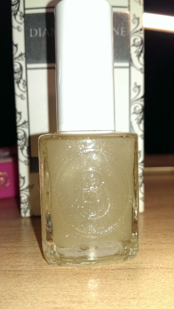 Очень красивое покрытие с глянцевым, с едва мерцающими зеркальными частичками покрытие. Сохнет очень быстро. Ногти выглядят с ним максимально аккуратно и эффектно. Кисточка удобная, плоская но не широкая. Фото на сайте неверно отображает вид продукта. Сам лак не белый с серебряными частичками, а скорее - желтоватый с мириадами мельчайших блесток бледно розового и голубоватого отлива. В маникюре этот шиммер практически не виден.