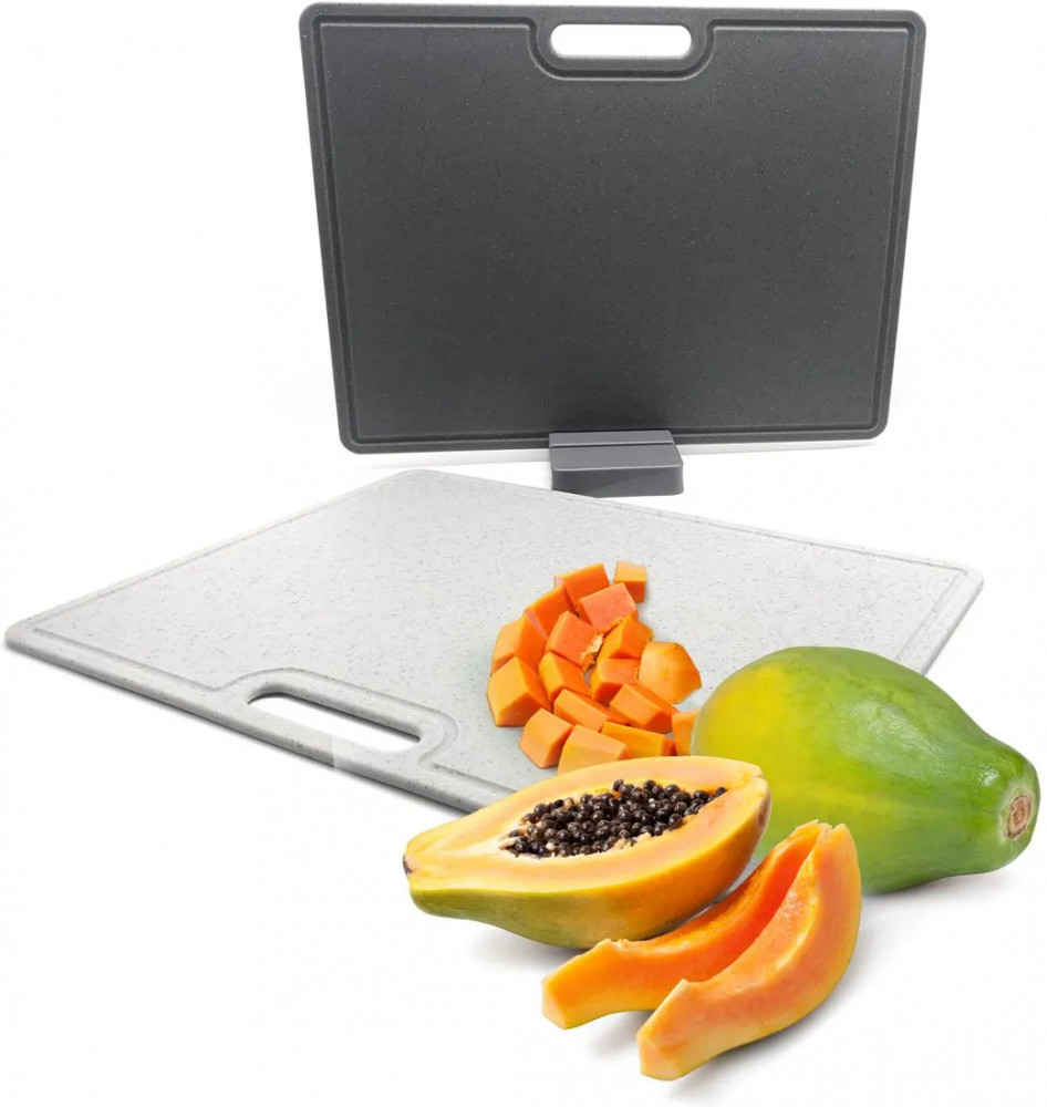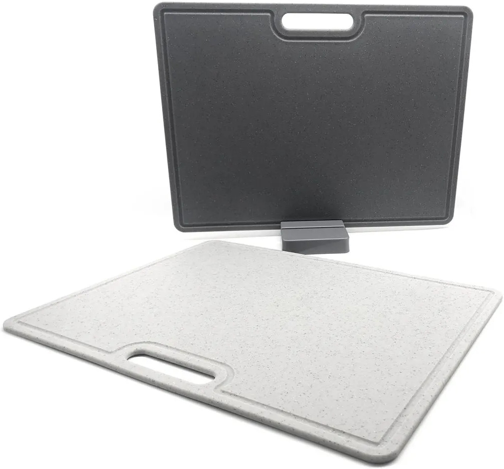 Набор разделочных досок в подставке выполнен в 2-х цветовых оттенках. Для Вашего удобства доски Fissman оснащены специальным желобком по краям, чтобы сок от нарезки продуктов не попадал на стол. Экологичный пластик не впитывает запахи и обладает повышенной устойчивостью к износу и истиранию. Обладая достаточной прочностью, пластиковая доска не затупляет лезвие ножа. Удобная подставка предназначена для компактного хранения досок.