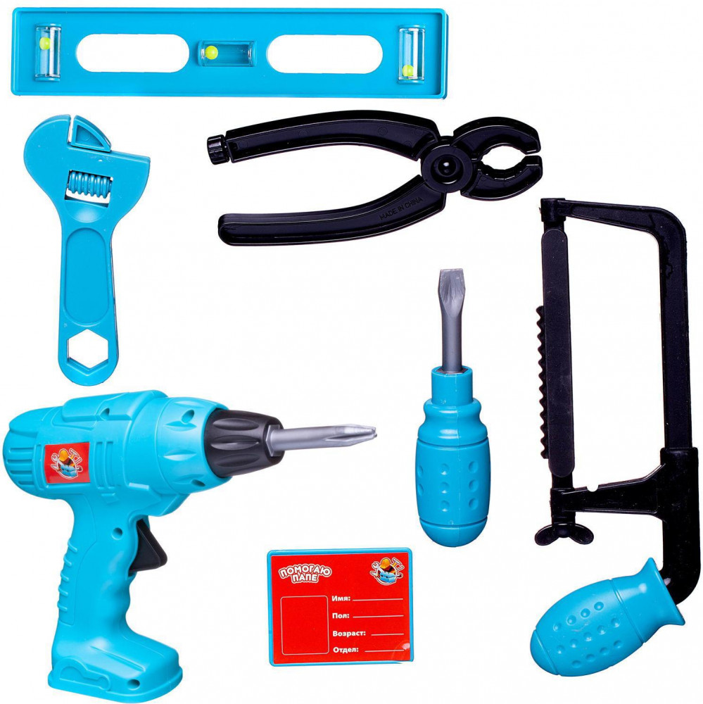 Игровой набор инструментов станет отличным подарком для маленького мастера. В наборе имеется все, что может пригодиться юному строителю. Все изделия набора изготовлены из нетоксичного и качественного материала. Малыш сможет отремонтировать игрушки и устранить все неисправности в доме, помогая папе. Игры с этим набором способствуют развитию воображения и познавательного мышления. Дрель в наборе механическая, при нажатие на кнопку начинает вращаться.