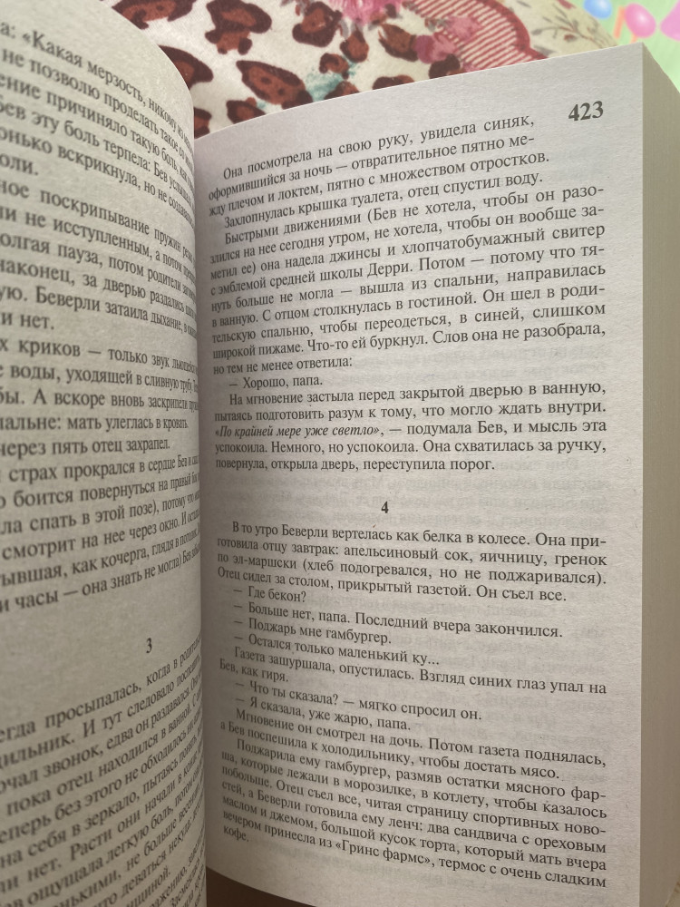 новинка в ЭК кинг - оно! что угодно, но эта книга была самой неожиданной для меня. Книга оказалась ооочень толстая, страницы газетные, хорошо раскрывается, мне нравится 👍🏼 никаких минусов не было, только буду читать :)